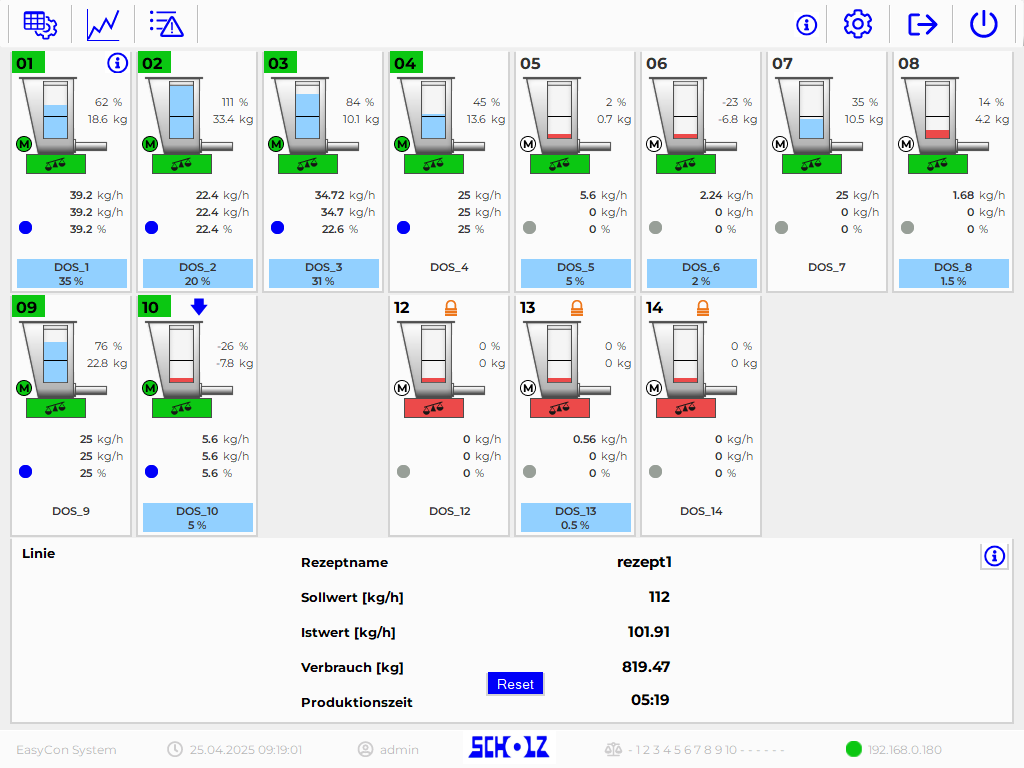 Flexible connection of all gravimetric and volumetric dosing devices. Depending on customer requirements, up to 16 dosing devices can be connected in one line.